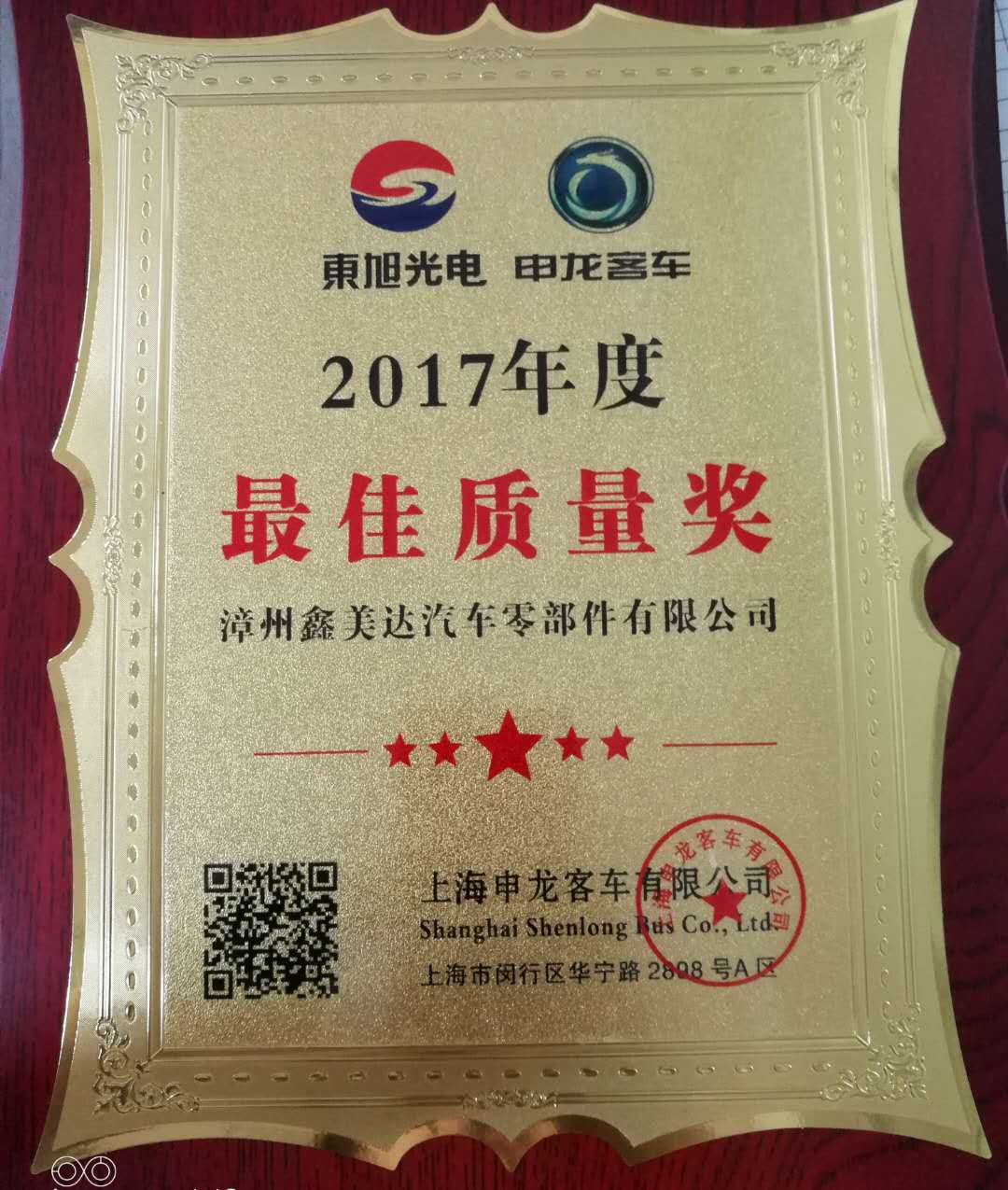 2017年申龙最佳质量奖